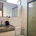 - Banheiro: bancada em granito, armario, box de vidro temperado