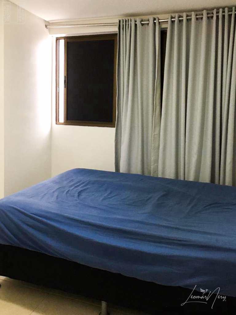 - Quarto: cama box, armario, ar-condicionado split, cortina blackout